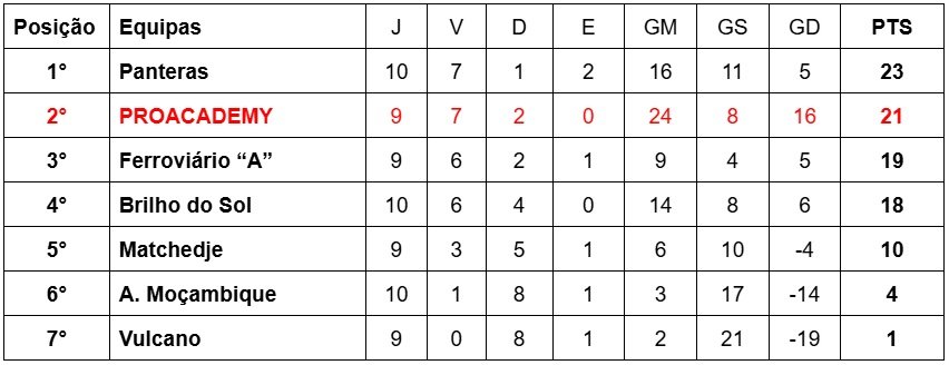 Com um jogo a menos, e apenas dois pontos atrás, em relação ao rival direto, a ProAcademy tem a chance real de chegar à primeira colocação nesta reta final. O Panteras, nosso rival direto na briga pelo título, enfrenta o Vulcano, último colocado, e tudo indica que sairá vencedor. Por isso, vencer o Matchedje no mantém firmes na disputa. Com a força do nosso ataque, com impressionantes 24 golos em 9 jogos, a equipa da ProAcademy está pronta para lutar até o fim pelo objetivo maior: a conquista do título.
